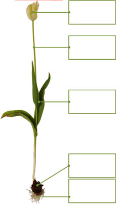 groep 5, seizoen lente, thema natuur planten, bomen, bloemenw – natuur in de lente – tulp uit bol / paardenbloem met wortel – knip&plak – 5p.