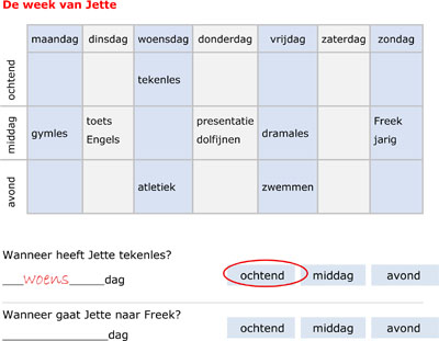 Op welke dag is de gymles? Is zwemmen in de ochtend, de middag of de avond?