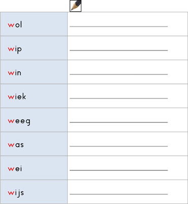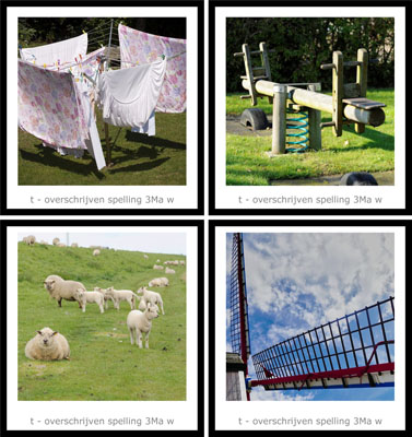Je kunt de kaarten beeldvorming en de opdrachtkaarten gebruiken voor het maken van een dictee in een eigen dicteeschrift.